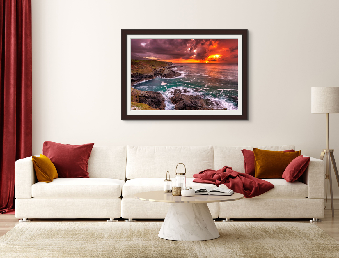 Absolutely stunning print. The colours are magnificent and the print quality itself is excellent. If you like it I highly recommend you purchase it – it looks even better in the flesh. A really nice characteristic of the print is that it looks fantastic in any light. In bright light it is extremely vivid, and all the detail really jumps out, while in ambient light it has the feel of embers in a fire. The framing is top notch too. Very pleased!
