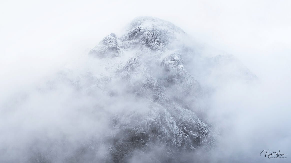 It was quite a gloomy day and I didn’t intend on photographing this Larger Massif as its name refers too but as I drove past I just loved the way the low clouds were forming around the summit. I took a series of shots over an hour as the clouds passed through with everyone creating its own unique high key almost abstract image of this gorgeous mountain.