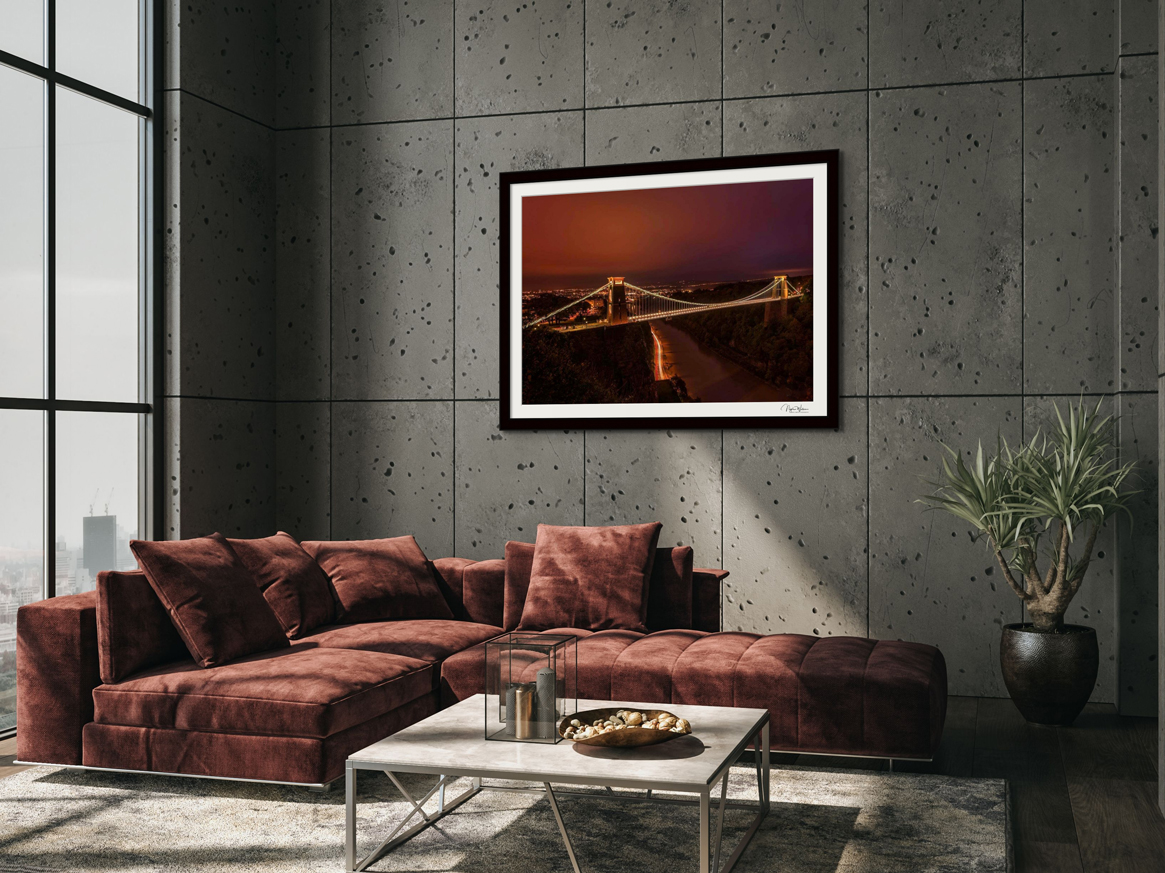 Open Edition Print the stunning Clifton Suspension Bridge at night spanning the Avon Gorge in Bristol.⠀
