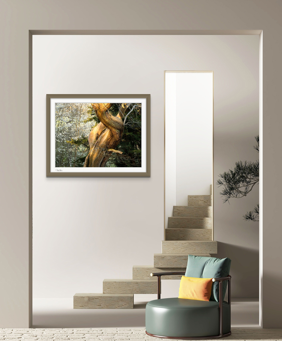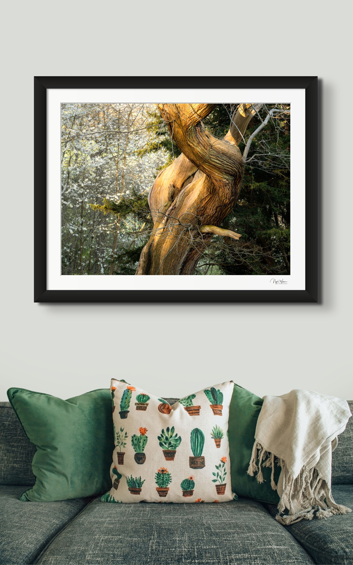 People view images in different ways and to me it depicts the shape of a a female torso with arms aloft feeling the warmth from the rising sun. This image was shot during early autumn and signifies the end of winter as we transition into spring and the trees begin to awaken.