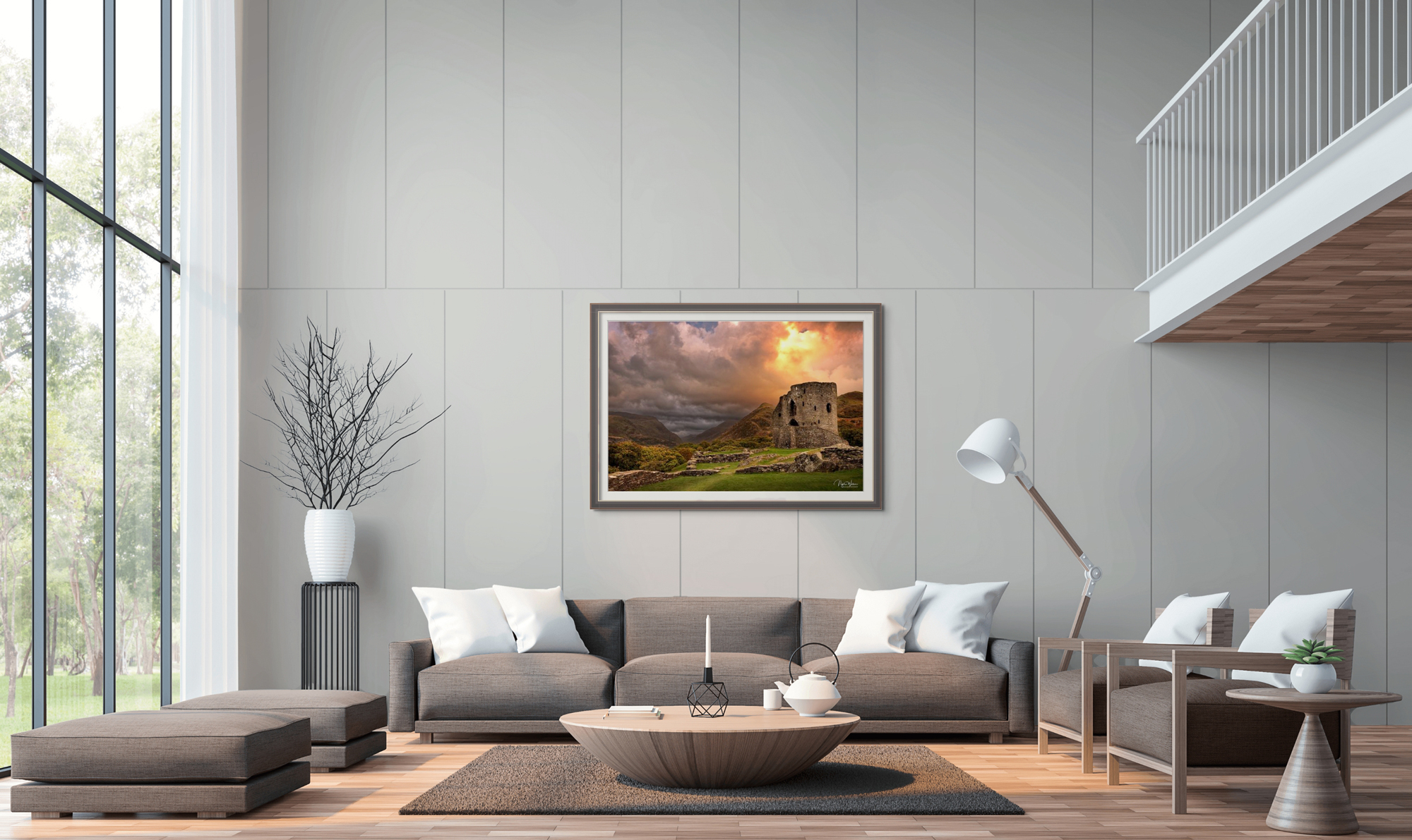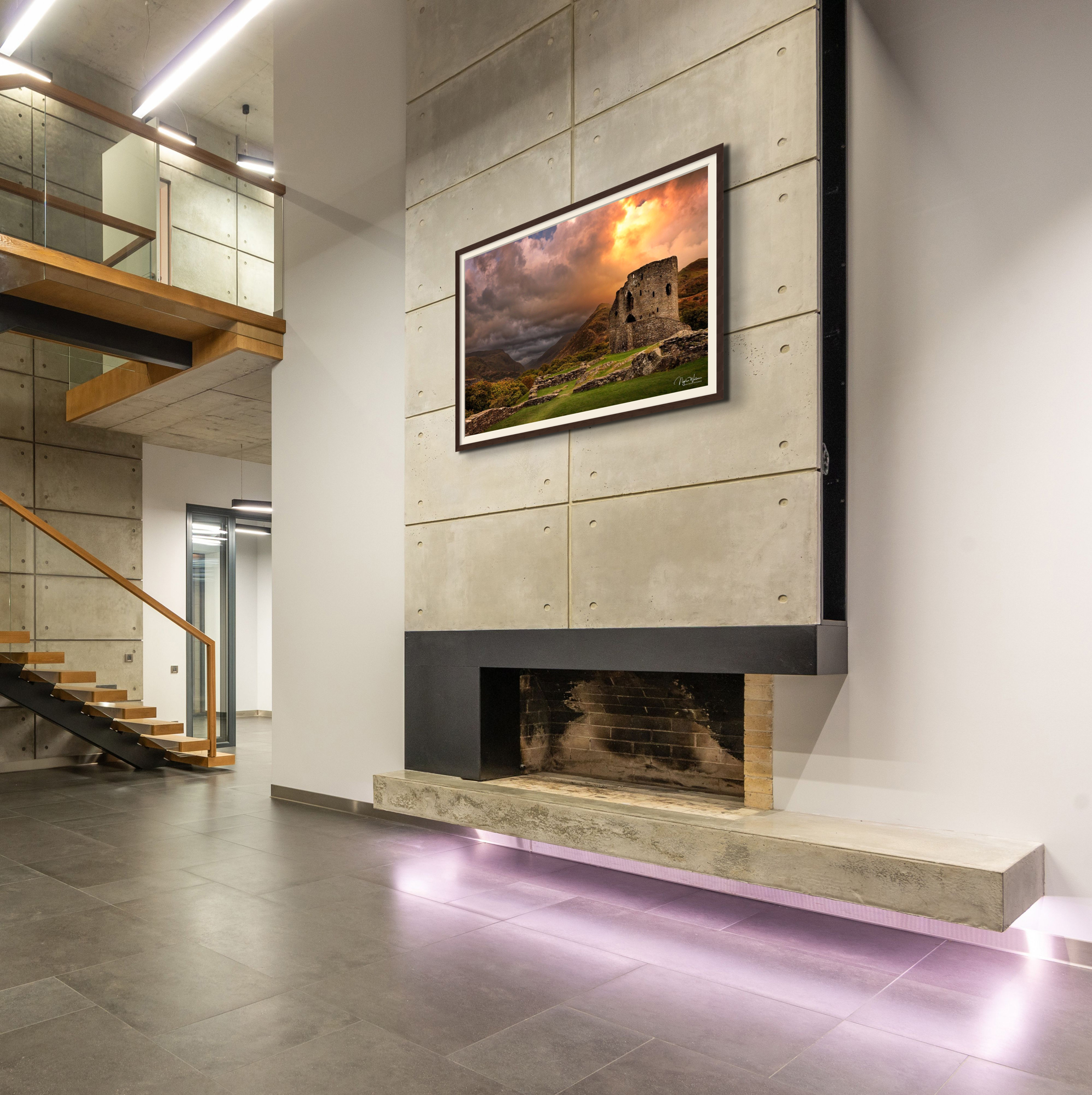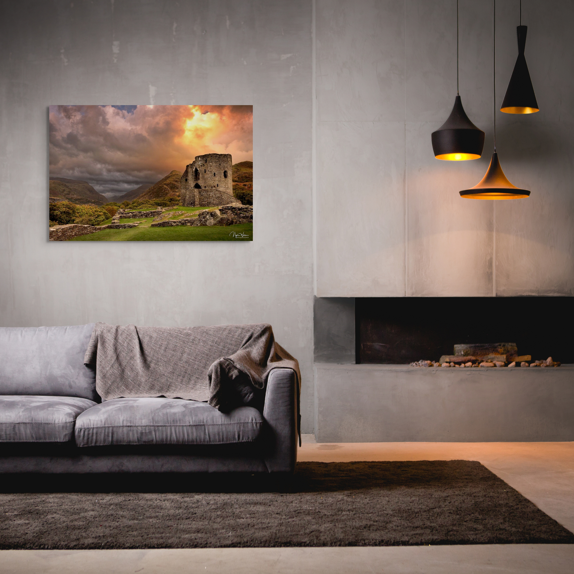 Limited Edition Print of the sky on fire at sunset over Dolbadarn Castle in Snowdonia, Wales.