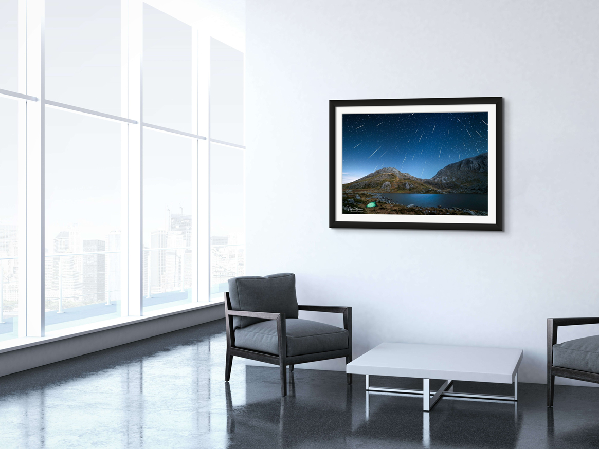 Open Edition Print of the Geminid Meteor Shower over the mighty Tryfan, Snowdonia in Wales.