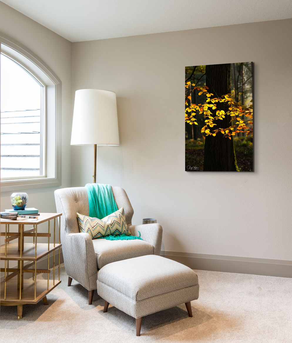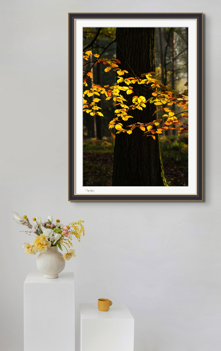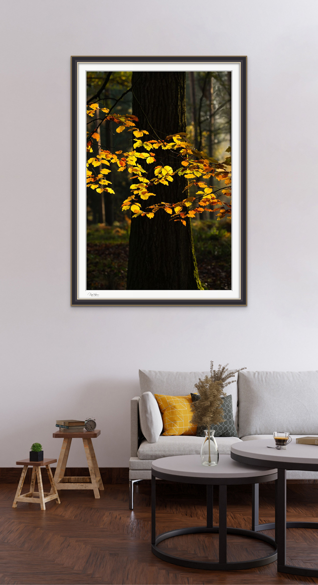 Titled “Illumine’ this print was taken as the sun began to set in my local woodland during mid autumn.