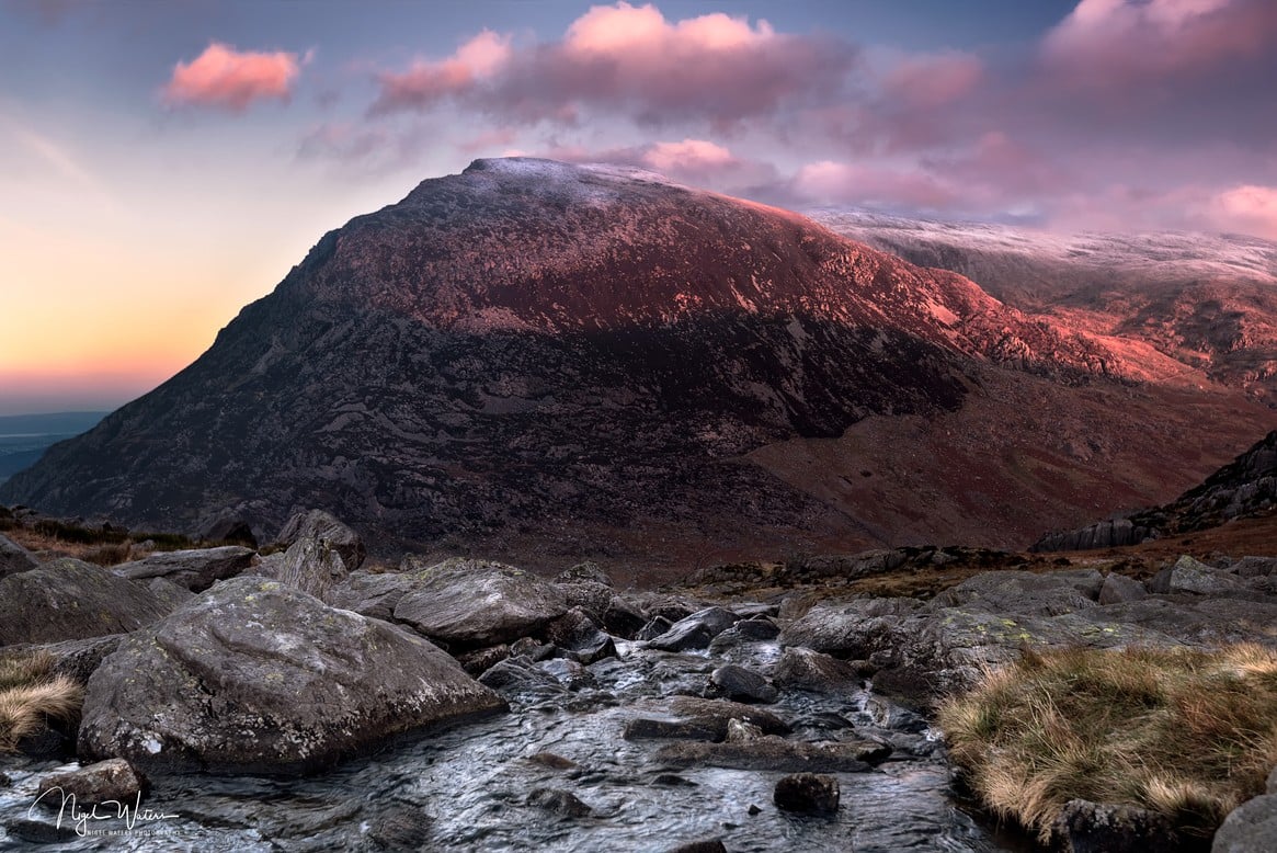 Open edition morning warmth on Pen yr Ole Wen signed fine art landscape print taken in Snowdonia, North Wales.