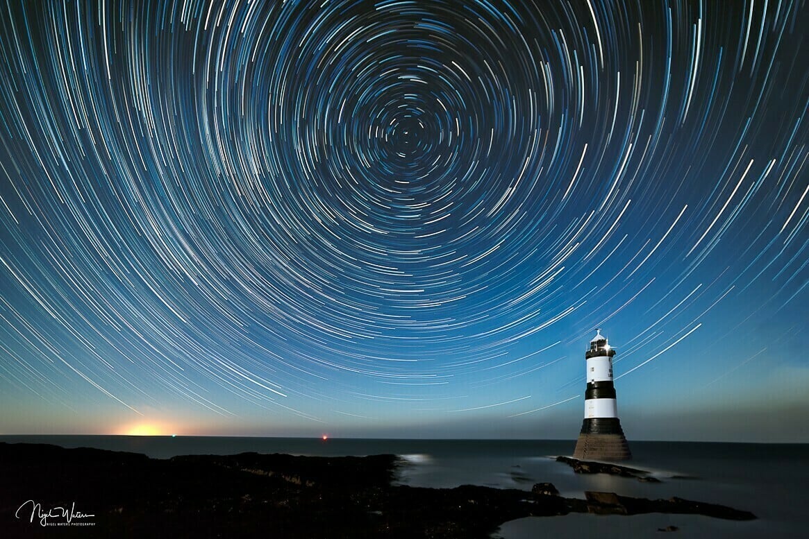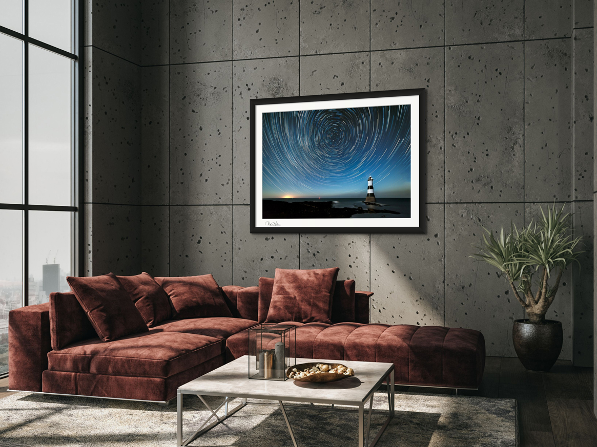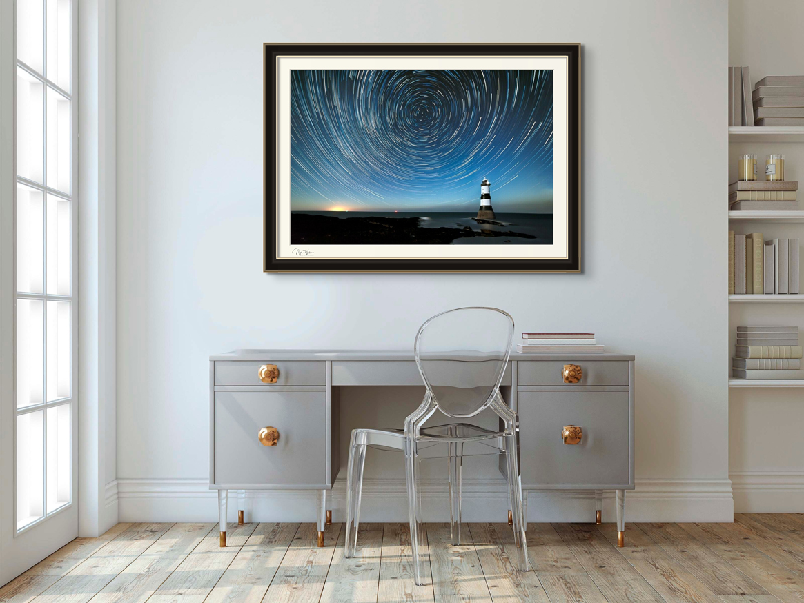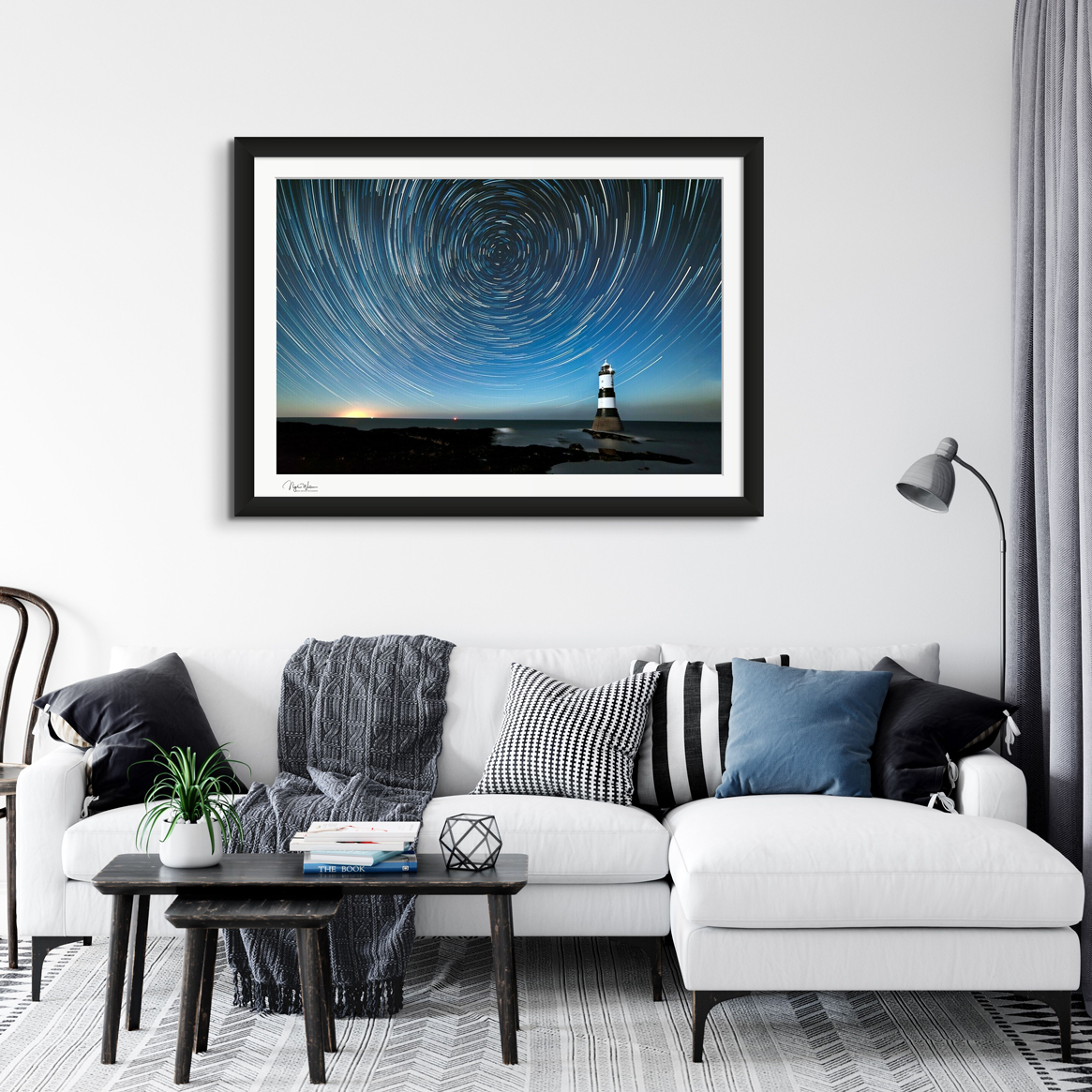 Open Edition Print of star trails over Penmon Point, Anglesey, Wales, UK.