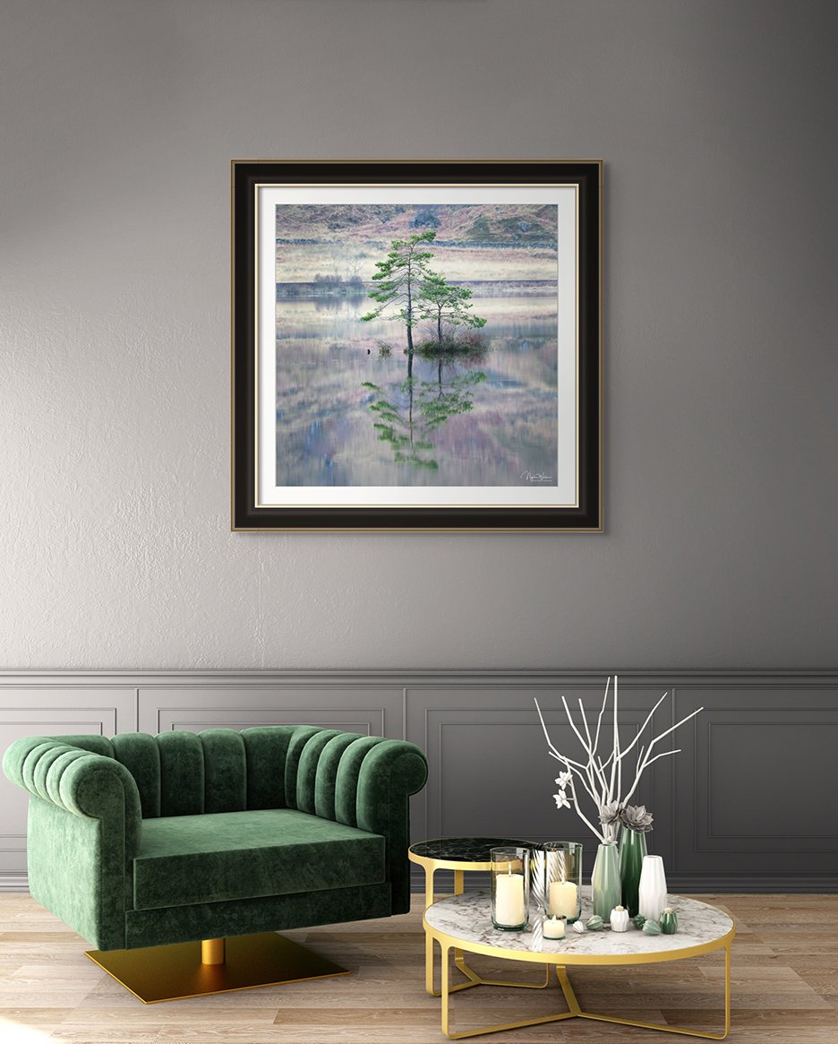 In the heart of the Scottish Highlands lies Loch Eilt, a serene expanse of water framed by rugged mountains lined with verdant woodland. Amidst this tranquil landscape stand two solitary souls, two trees isolated in the middle of the loch, their presence standing proud watching over the loch Eilt as if standing guard to a greater mass of water beyond.