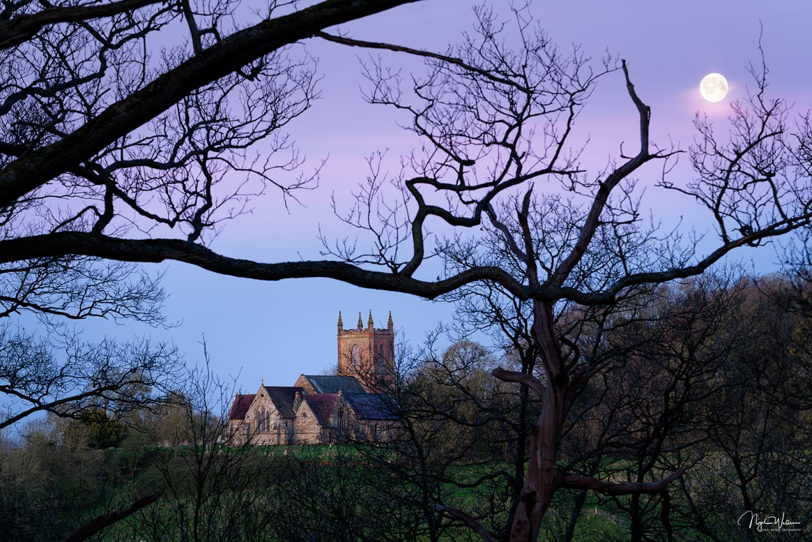 This photograph has literally been years in the making and whenever I have tried to get the images conditions have never been right. It can only be shot during a short window to get the moon in the right position before the tree leaves come back which obscure the view.