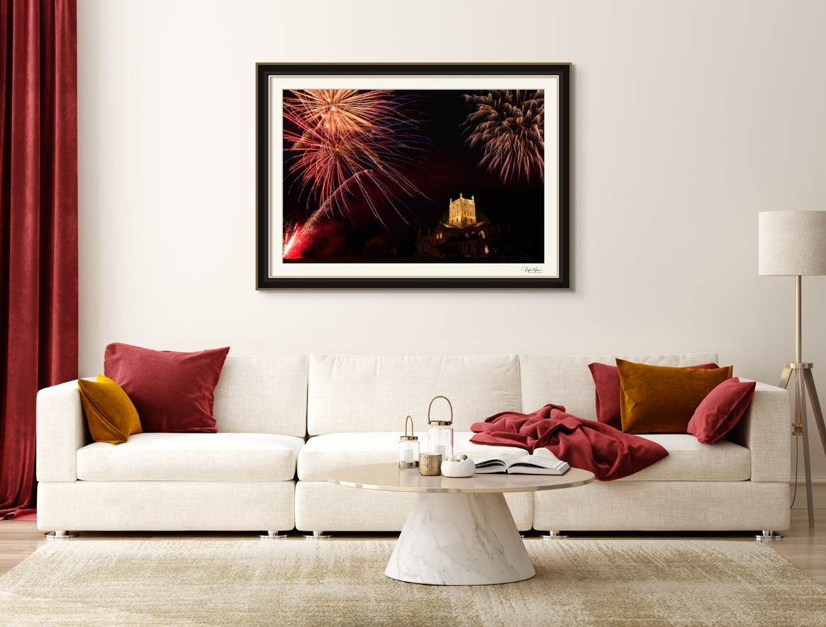 Limited Edition Print of an awesome firework display over the wonderful Tewkesbury Abbey, Gloucestershire, England.
