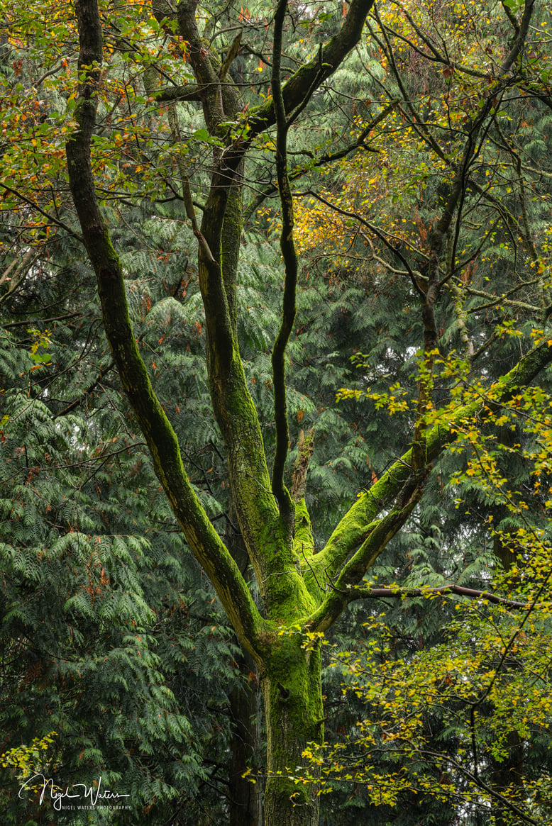 This image caught my eye as the last light of the day was shining through the tree canopy highlighting the vibrant green moss on the trunk of this tree. This photograph was taken at Chaddesley Wood in Worcestershire.